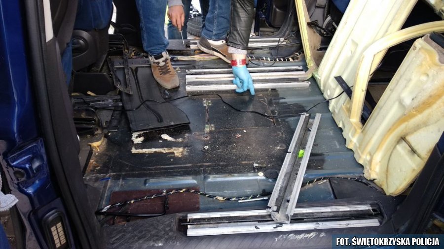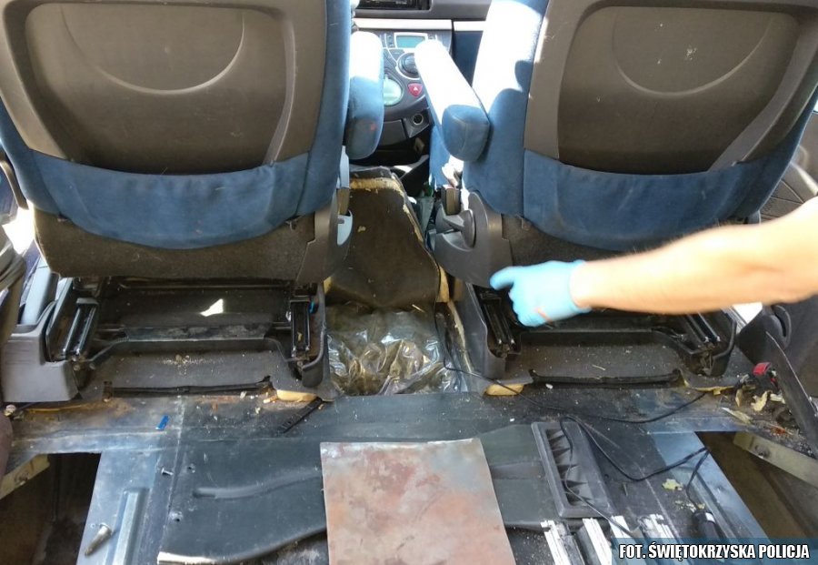 Po wymontowaniu siedzeń pasażerów, znaleziono drugą podłogę, gdzie ukryto przemycana marihuanę. Samochód był specjalnie przystosowany do przemytu, w którym funkcjonariusze znaleźli 66 worków, hermetycznie zapakowanego suszu.