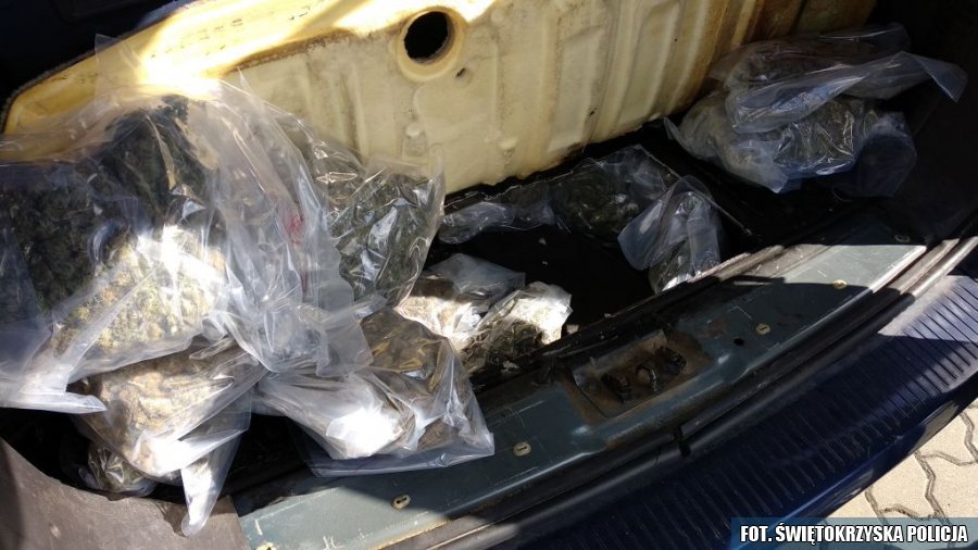 Młode małżeństwo z Kielc przewoziło w samochodzie 30 kg marihuany. Zostali zatrzymani przez Kielecka policję. Grozi im co najmniej 3 lata więzienia.