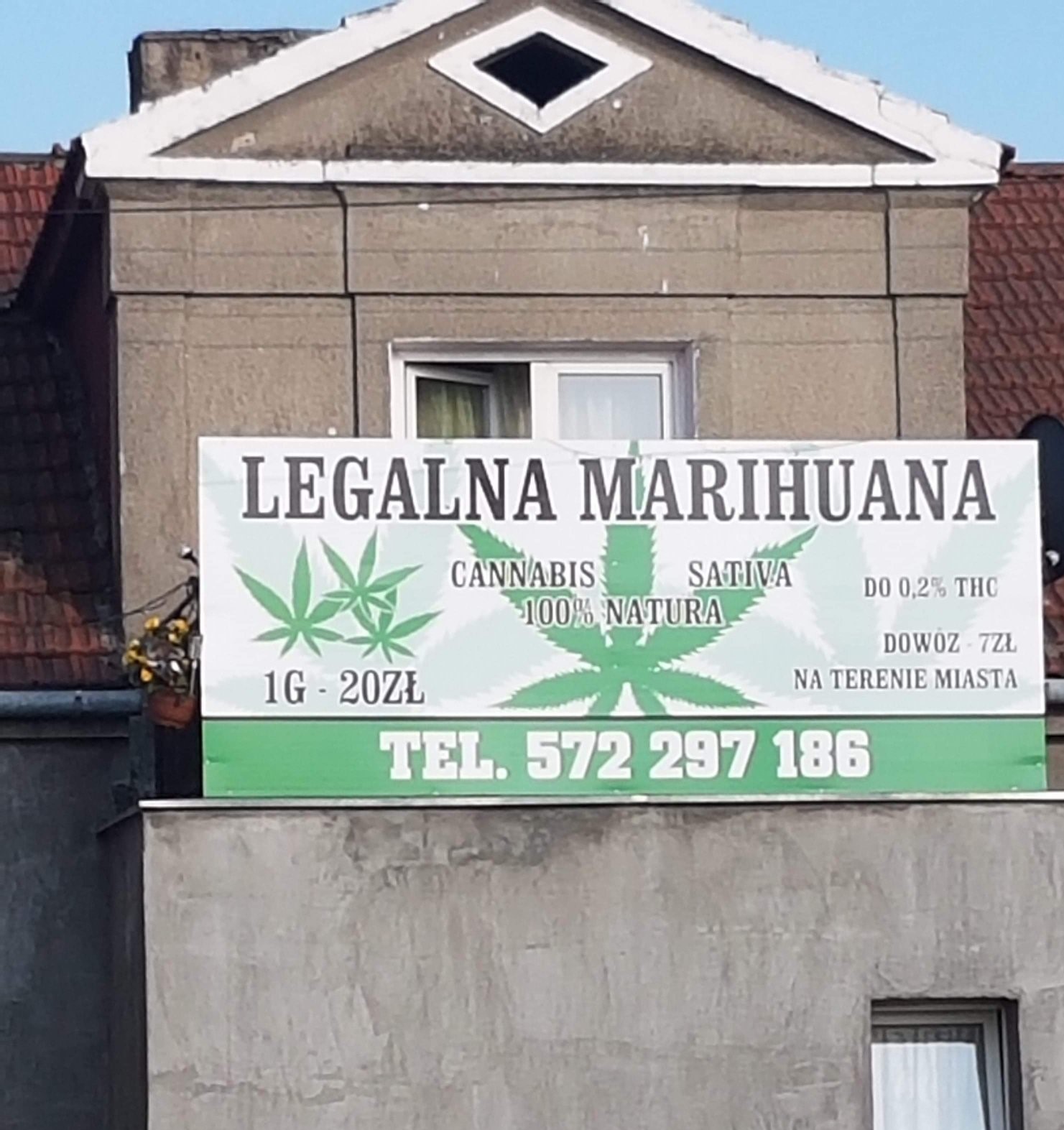 W centrum Łomży pojawiły się banery i szyldy reklamowe z hasłem „Legalna marihuana”. Brzmi to zbyt pięknie, żeby …