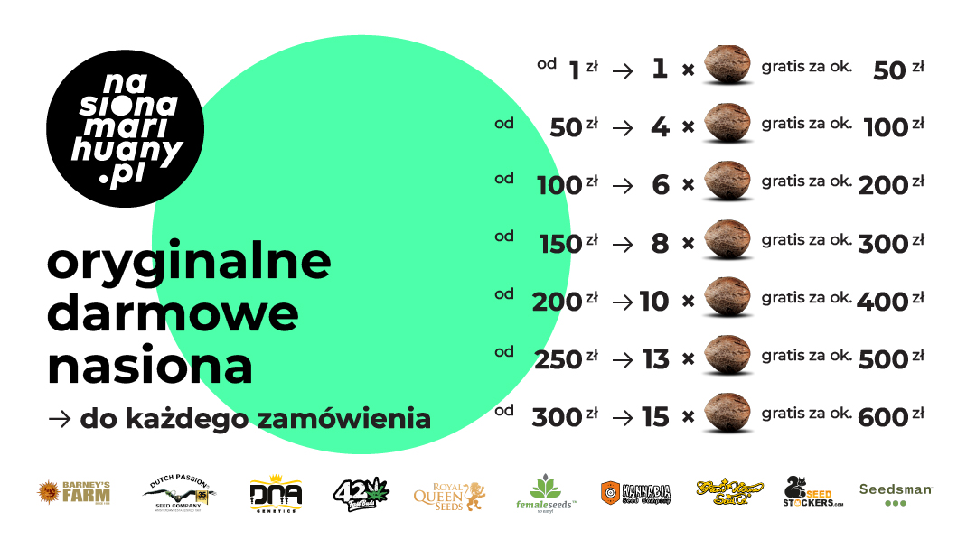 Tej promocji, jak sprawdziliśmy i porównaliśmy w innych sklepach z nasionami konopi indyjskich, nikt dotąd nie przebił! Wydajcie niewiele, a zyskujecie znacznie więcej. Wystarczy nawet najdrobniejszy zakup w sklepie Nasionamarihuany.pl, żeby otrzymać gratis o znacznie wyższej wartości. Sklep Nasionamarihuany.pl to jeden z najlepszych w Europie oficjalnych dystrybutorów nasion marihuany z renomowanych, światowych seed banków. Działają …