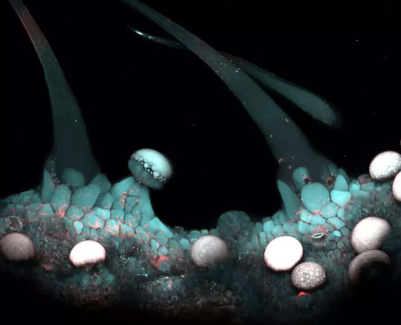 Substancje te szczególnie obficie występują na strukturach przypominających kształtem grzyba co widać na opublikowanym zdjęciu. Włoski są też głównym źródłem składników zapachowych rośliny, nazywanych terpenami lub izoprenoidami.