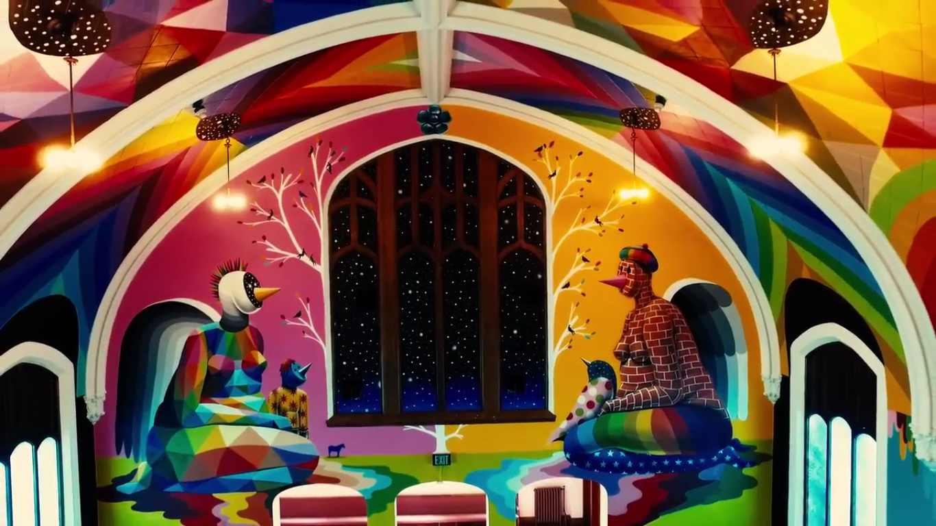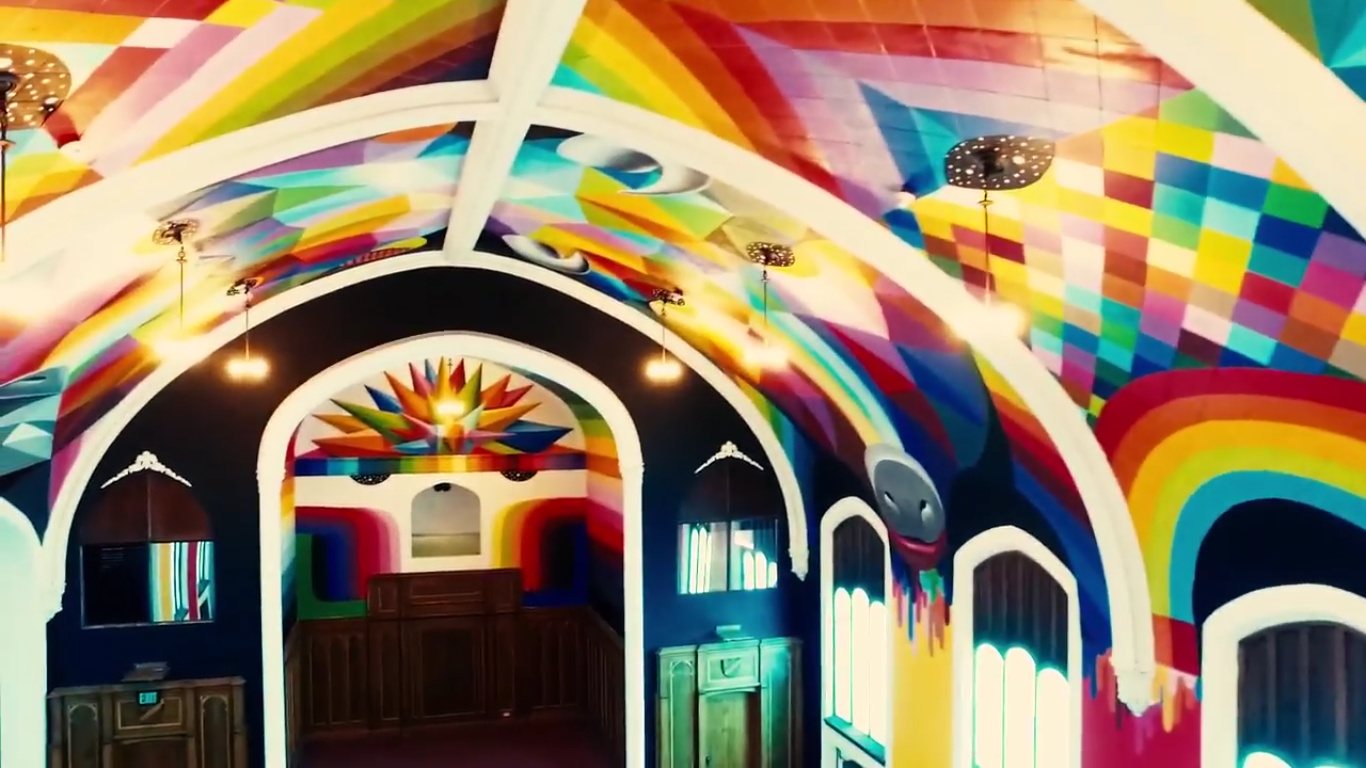 International Church of Cannabis mieści się w dawnym luterańskim kościele. Wnętrza zostały częściowo odremontowane i pomalowane według projektu hiszpańskiego grafika, Okudę San Miguela.