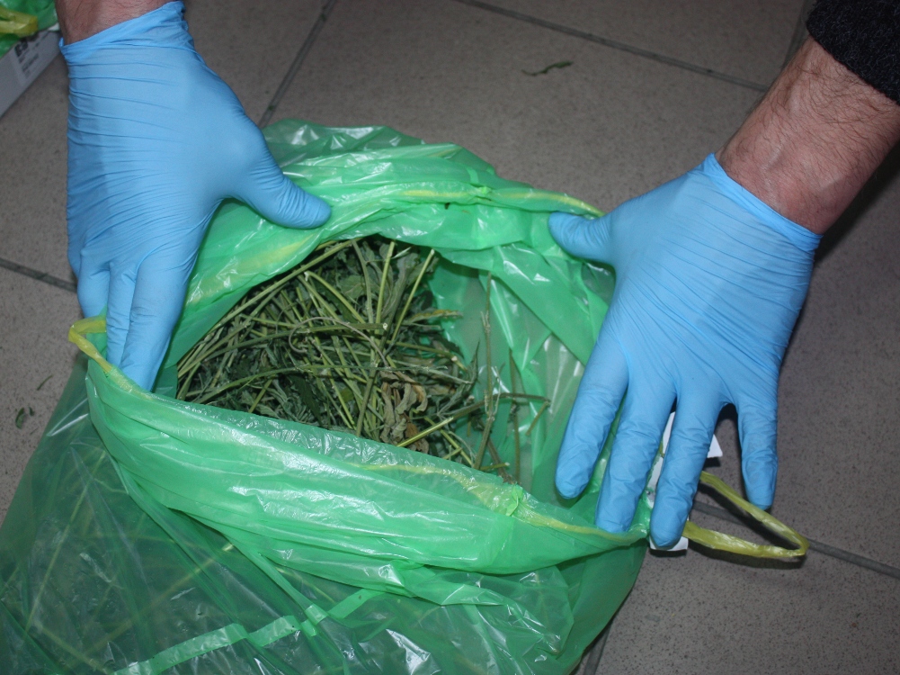 Skonfiskowane łodygi marihuany.