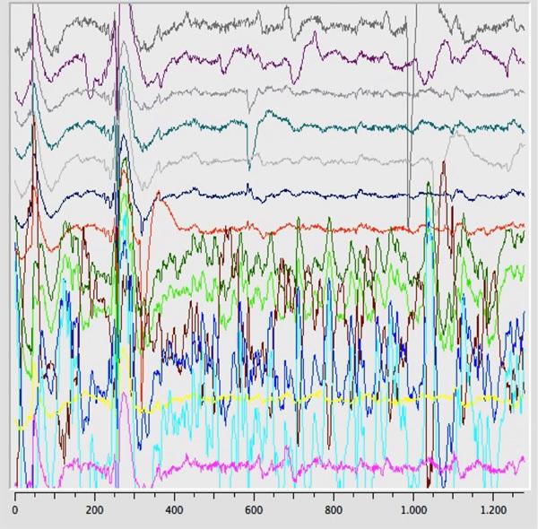 W badaniu wzięły udział dwie osoby, z których jedna paliła jointa a druga raczyła się ciasteczkiem z THC. Badani nie zostali poproszeni o wykonywanie żadnych zadań – ich mózgi znajdują się w zwyczajnym stanie rozluźnienia. Porównajcie zapis czynności bioelektrycznej mózgu pierwszej badanej osoby przed i po zapaleniu zioła. Dwa skany dzieli ok. 15 min.