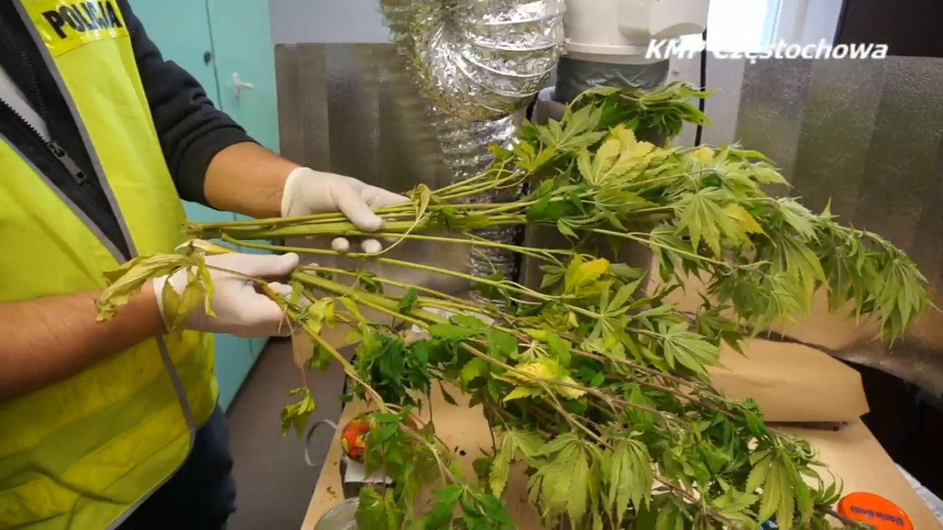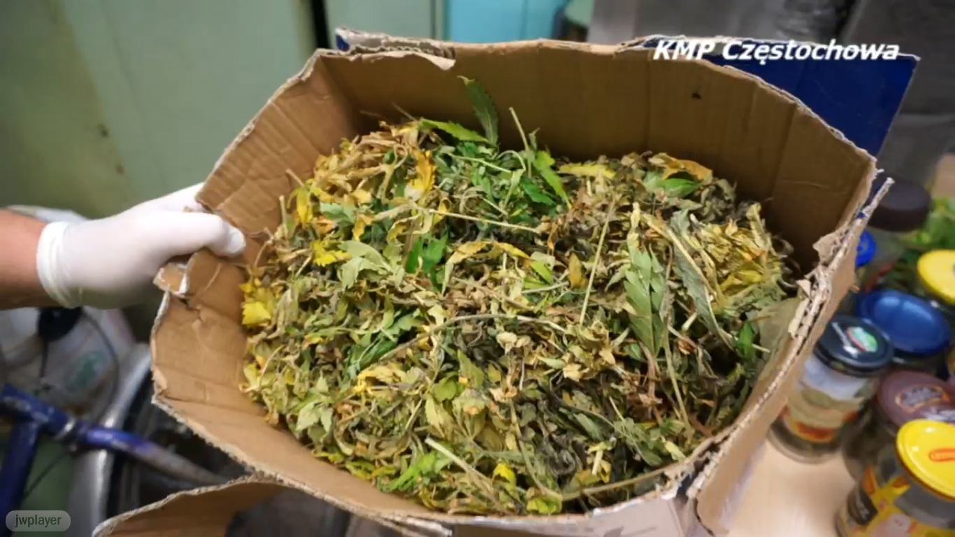 W domu policjanci znaleźli kolejne porcje suszu w słoikach, dwie sadzonki, ścięte ziele i typowy sprzęt wykorzystywany podczas uprawy marihuany. W sumie znaleziono 3,5 kg roślin.