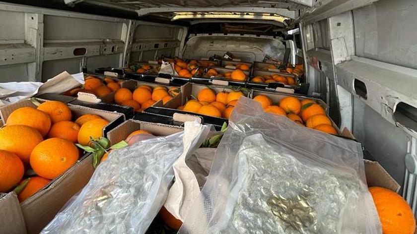 Skrzynki z pomarańczami, a między nimi 36 kilogramów zioła!