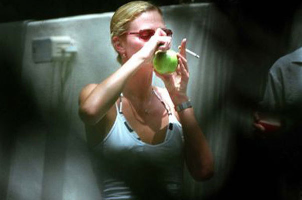 Wszędobylscy Paparazzi, uchwycili zdobywczynię Oscara, we własnym ogródku gdy jarała zioło z własnoręcznie skonstruowanej fajki z jabłka!! Propsy za inwencję twórczą. Widać braki w sprzęcie odczuwają również celebryci:)